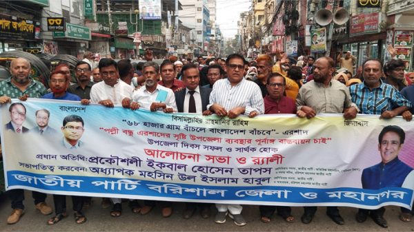 বরিশালে উপজেলা দিবস উপলক্ষে জাতীয় পার্টির আলোচনা সভা ও র‌্যালি