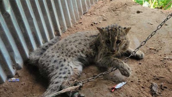 বরিশালে খাবারের সন্ধানে এসে জালে আটকা মেছোবাঘ