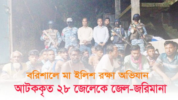 বরিশালে মা ইলিশ রক্ষা অভিযান : আটককৃত ২৮ জেলেকে জেল-জরিমানা