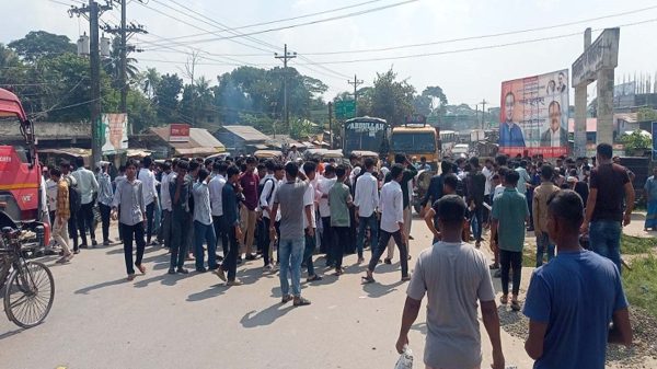 গৌরনদী সরকারি কলেজের সামনে সড়ক অবরোধ করে শিক্ষার্থীরা