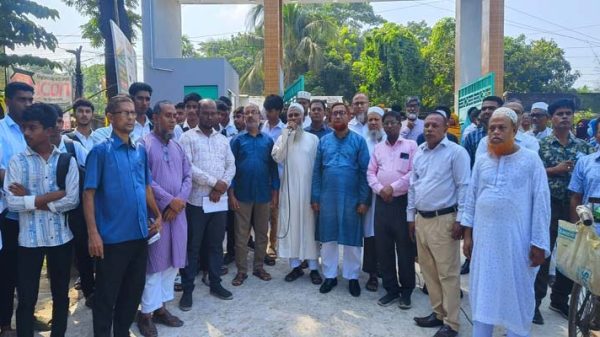 পুলিশি হামলার প্রতিবাদে বাবুগঞ্জে শিক্ষকদের কর্মবিরতি