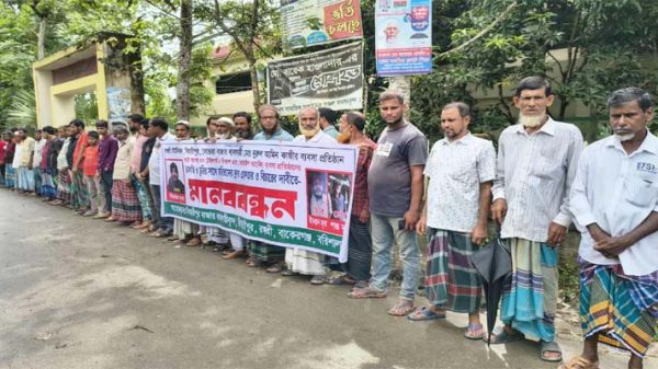 বাকেরগঞ্জ (বরিশাল) প্রতিনিধি- বরিশালের বাকেরগঞ্জে চুরির মামলা না নেয়া এবং অবিলম্বে মামলা রেকর্ড করে চুরির সাথে জড়িতদের গ্রেপ্তারের দাবিতে মানববন্ধন অনুষ্ঠিত হয়েছে। শনিবার (১১ অক্টোবর) সকাল ১০ টায় উপজেলার বোতরা