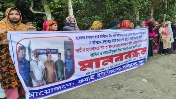 বাকেরগঞ্জে বিএনপি নেতার মুক্তির দাবিতে মানববন্ধন