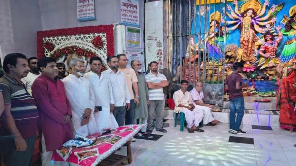 বাকেরগঞ্জে বিএনপি নেতা মাহমুদের শারদীয় দুর্গা পূজা মন্ডপ পরিদর্শন