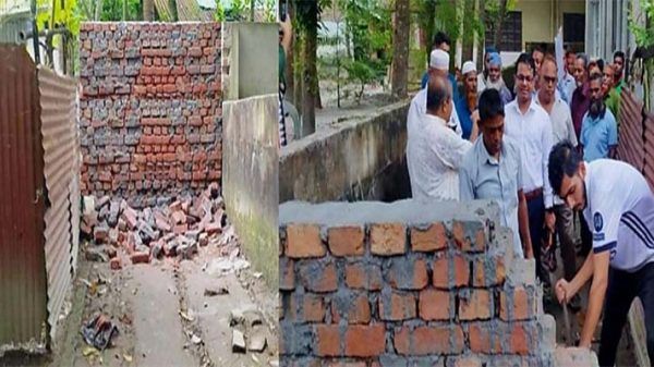 নিজস্ব প্রতিবেদক, বরিশাল: আদালতের ১৪৪ ও ১৪৫ ধারার নিষেধাজ্ঞার নির্দেশকে উপেক্ষা করে তৃতীয়বারের মতো ফের দেয়াল নির্মাণ করে আটকে দেওয়া হয়েছে ২০টি পরিবারের চলাচলের একমাত্র রাস্তা। ঘটনাটি বরিশালের গৌরনদী পৌরসভার
