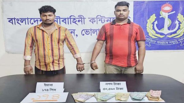 লালমোহন (ভোলা) প্রতিনিধি: ভোলার লালমোহন উপজেলায় মাদক কারবারের অর্ধলক্ষাধিক টাকাসহ দুই ব্যবসায়ীকে আটক করা হয়েছে। সোমবার দুপুরে তাদের আদালতে পাঠানো হয়েছে। এরআগে, রোববার রাতে উপজেলার কালমা ইউনিয়নের ৯ নম্বর ওয়ার্ডের