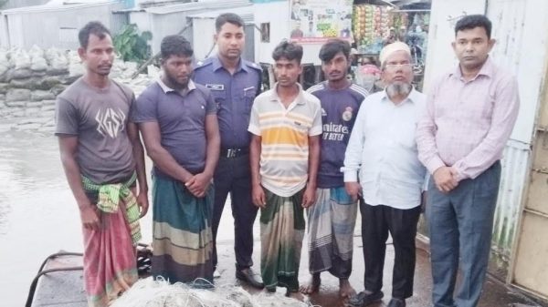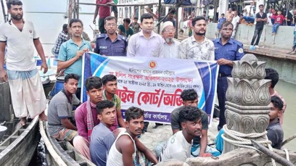 লালমোহনে নিষেধাজ্ঞা অমান্য করে মাছ ধরায় ১০ জেলে আটক