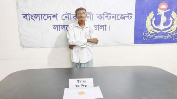 লালমোহনে নৌবাহিনীর অভিযানে মাদক ব্যবসায়ী আটক