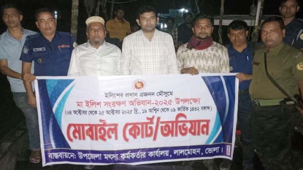 লালমোহন (ভোলা) প্রতিনিধি: ভোলার লালমোহন উপজেলায় মা ইলিশ সংরক্ষণ অভিযানের প্রথম দিনে জাল ও মাছ জব্দ করা হয়েছে। শুক্রবার মধ্যরাত থেকে শনিবার বিকেলে পর্যন্ত উপজেলার মেঘনা- তেঁতুলিয়া নদীতে উপজেলা নির্বাহী