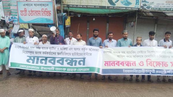 লালমোহন (ভোলা) প্রতিনিধি: ইসলামী ব্যাংকসহ ব্যাংকিংখাতে অবৈধ নিয়োগ বাতিলের দাবিতে ভোলার লালমোহন উপজেলায় মানববন্ধন অনুষ্ঠিত হয়েছে। সোমবার সকালে পৌরশহরের চৌরাস্তার মোড়ে ‘বৈষম্যবিরোধী চাকরিপ্রত্যাশী পরিষদ’ ও ‘ইসলামী ব্যাংক গ্রাহক ফোরাম’-এর যৌথ