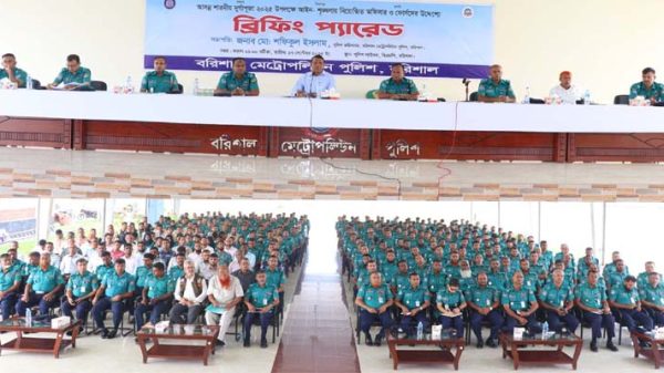 নিজস্ব প্রতিবেদক, বরিশাল: বরিশালে আসন্ন শারদীয় দুর্গাপূজা উপলক্ষে আইন-শৃঙ্খলা ডিউটিতে নিযুক্ত পুলিশ সদস্যদের ব্রিফিং প্যারেড অনুষ্ঠিত। বিষয়টি নিশ্চিত করেছেন (বিএমপি) মিডিয়া সেল। আজ (২৭ সেপ্টেম্বর) সকাল ৯ টার সময় বরিশাল