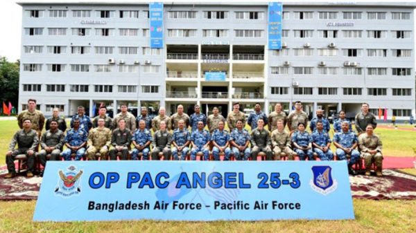 নিজস্ব প্রতিবেদক// বাংলাদেশ বিমান বাহিনী ও যুক্তরাষ্ট্রের প্যাসিফিক এয়ার ফোর্সের সাত দিনব্যাপী যৌথ অনুশীলন মহড়া ‘অপারেশন প্যাসিফিক এঞ্জেল ২৫-৩’ শুরু হয়েছে।   রোববার (১৪ সেপ্টেম্বর) আন্তঃবাহিনী জনসংযোগ পরিদপ্তরের (আইএসপিআর) পাঠানো