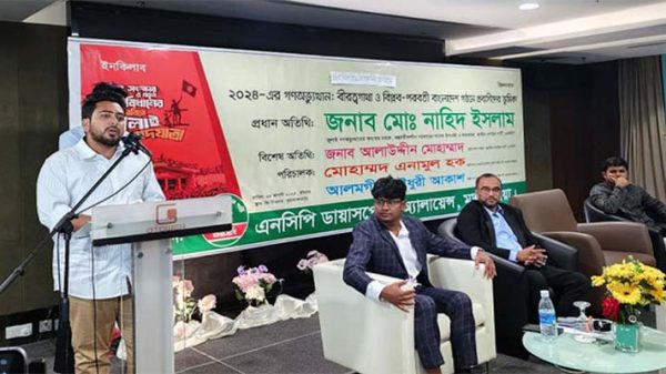 নিজস্ব প্রতিবেদক, বরিশাল: জাতীয় নাগরিক পার্টি (এনসিপি)-এর আহ্বায়ক নাহিদ ইসলাম মনে করছেন, আগামী ফেব্রুয়ারিতে নির্বাচন হওয়ার সম্ভাবনা নেই। তিনি বলেন, ‘আমরা জুলাই সনদের আইনি ভিত্তির মাধ্যমে গণপরিষদের নির্বাচনে অংশ নিতে