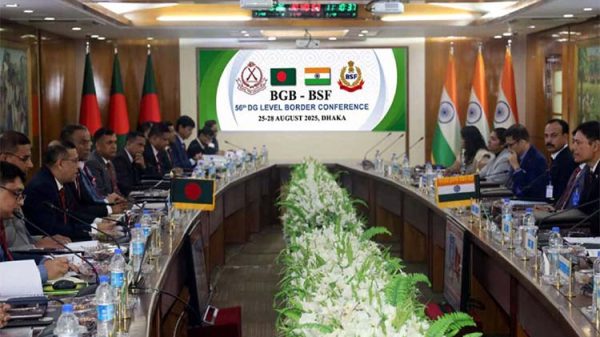 নিজস্ব প্রতিবেদক: বাংলাদেশ বর্ডার গার্ড (বিজিবি) ও ভারতের বর্ডার সিকিউরিটি ফোর্স (বিএসএফ)-এর মধ্যে মহাপরিচালক পর্যায়ের চার দিনব্যাপী সীমান্ত সম্মেলন শুরু হয়েছে। মঙ্গলবার (২৬ আগস্ট) সকালে রাজধানীর পিলখানায় বিজিবি সদর দপ্তরের