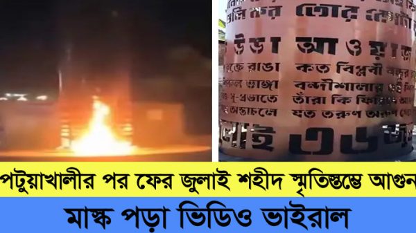 নিজস্ব প্রতিবেদক : পটুয়াখালীর পর এবার রাতের আধারে দুর্বৃত্তদের দেয়া আগুনে পুড়ল ফেনী শহরের মুক্ত বাজারে শহীদদের স্মরণে নির্মিত জুলাই শহীদ স্মৃতিস্তম্ভ। রবিবার (১৬ নভেম্বর) সকালে আগুন দেওয়ার একটি