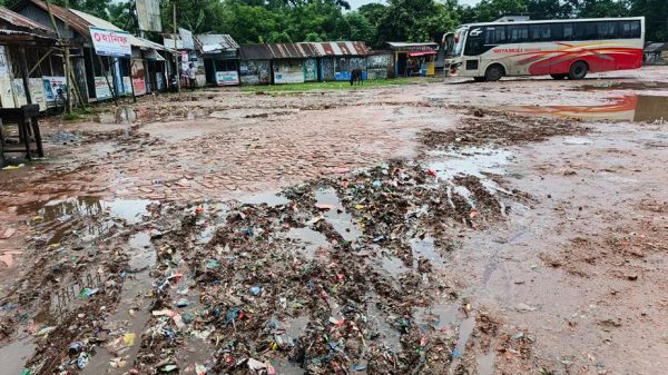ঝালকাঠি বাসস্ট্যান্ডটি খানাখন্দে ভরা, যাত্রীদের দুর্ভোগ