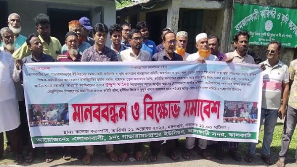 ঝালকাঠি সংবাদদাতা: ঝালকাঠি সদর উপজেলার গাভারামচন্দ্রপুর ইউনিয়নের রমজানকাঠি কারিগরি ও কৃষি কলেজের অধ্যক্ষ পীযূষ কান্তি মন্ডল ও সাবেক সভাপতি কুদ্দুস খানের স্বেচ্ছাচারিতা, অনিয়ম ও দুর্নীতির বিচারের দাবিতে এলাকাবাসীর উদ্যোগে