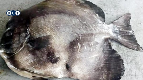 নিজস্ব প্রতিবেদক : জেলার কুয়াকাটা সংলগ্ন বঙ্গোপসাগরে জেলের জালে ধরা পড়েছে বিরল প্রজাতির মাছ লংফিন ব্যাট ফিশ। তবে স্থানীয়ভাবে এটি পরিচিত ‘কিং চাঁদা’ মাছ নামে। এর ওজন প্রায় ৪ কেজি