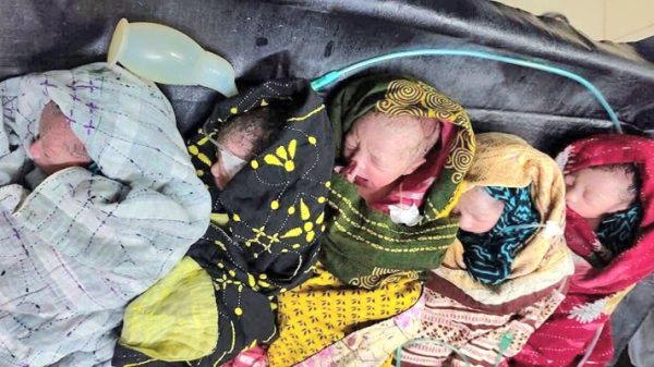 নিজস্ব প্রতিবেদক// বরিশালের একটি বেসরকারি হাসপাতালে লামিয়া আক্তার (২২) নামের এক গৃহবধূ একইসঙ্গে পাঁচটি নবজাতকের জন্ম দিয়েছেন। এই বিরল ঘটনায় জন্ম নেওয়া নবজাতকদের মধ্যে তিনজন ছেলে এবং দুইজন মেয়ে।