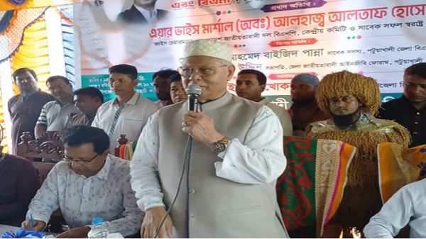 পটুয়াখালী প্রতিনিধি// বিএনপির ভাইস চেয়ারম্যান এবং সাবেক স্বরাষ্ট্র ও বাণিজ্যমন্ত্রী এয়ার ভাইস মার্শাল অব. আলতাফ হোসেন চৌধুরী বলেছেন, শেখ হাসিনা যখন পালিয়ে যায় কোনো দেশ তাকে গ্রহণ করেননি, ভারত