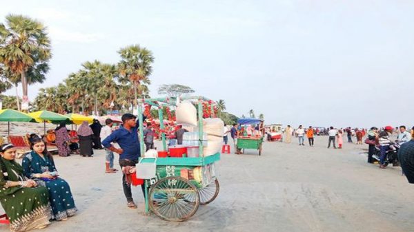 ছুটির দিনে কুয়াকাটা সৈকতে পর্যটকের ঢল