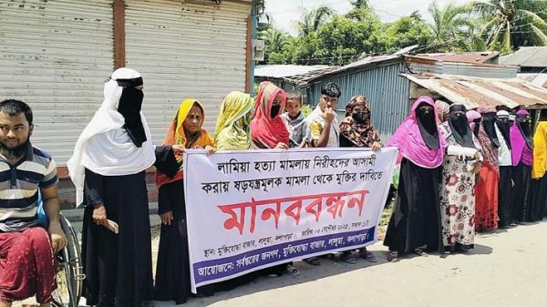 এস এম আলমগীর হোসেন, কলাপাড়াঃ পটুয়াখালীর কলাপাড়ায় লামিয়া হত্যার ঘটনায় নিরীহ গ্রামবাসীদের নামে মিথ্যা মামলা প্রত্যাহার ও প্রকৃত অপরাধীদের চিহ্নিত এবং তাদের গ্রেফতারের দাবিতে বিক্ষোভ মিছিল ও মানববন্ধন করেছে শতশত