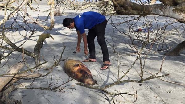 নিজস্ব প্রতিবেদক: পটুয়াখালীর কুয়াকাটা সৈকতে ১০ ফুট লম্বা একটি মৃত ইরাবতি ডলফিন ভেসে এসেছে। এটির পুরো মাথা ও শরীরের বিভিন্ন অংশে চামড়া ওঠানো। মাথা ও শরীরে ক্ষত রয়েছে। বৃহস্পতিবার (৪