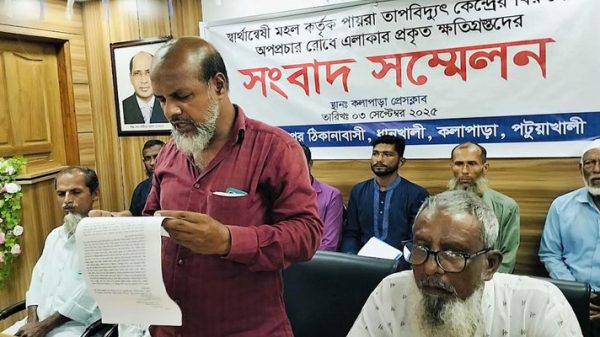 এস এম আলমগীর হোসেন, কলাপাড়াঃ পটুয়াখালীর কলাপাড়ায় পূর্ব বিরোধকে কেন্দ্র করে লামিয়া হত্যার ঘটনায় প্রকৃত অপরাধীদের চিহ্নিত এবং নিরীহ গ্রামবাসীদের মিথ্যা মামলা থেকে মুক্তির দাবি জানিয়ে সংবাদ সম্মেলন করেছে ক্ষতিগ্রস্ত