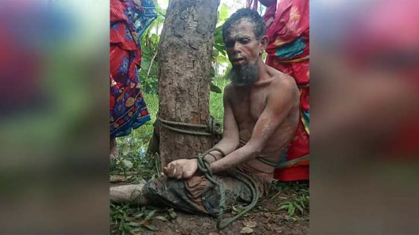 বাউফলে গাছে বেঁধে মধ্যযুগীয় কায়দায় ফেরিওয়ালাকে নির্যাতন