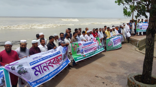 কুয়াকাটা সমুদ্র সৈকত ভাঙ্গন রোধের দাবিতে মানববন্ধন