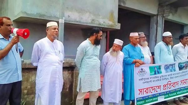 পিরোজপুর প্রতিনিধি : পিরোজপুরের কাউখালীতে শনিবার (৯ আগস্ট) বেলা সাড়ে এগারোটায় উপজেলা পরিষদের গেটের সামনে কাউখালী উপজেলায় কর্মরত সর্বস্তরের সাংবাদিকদের উদ্যোগে, গাজীপুরের সাংবাদিক তুহিনকে জবাই করে হত্যার দৃষ্টান্তমূলক বিচার সহ