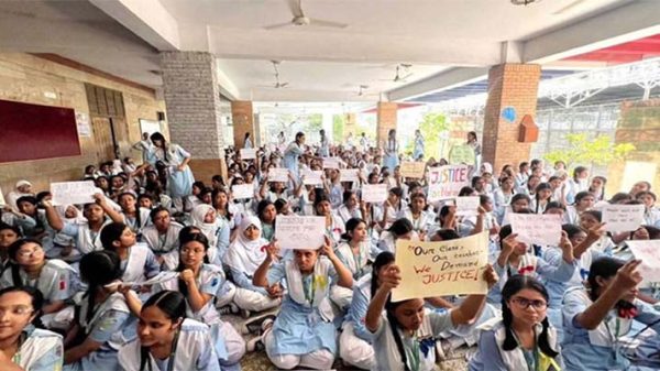 নিজস্ব প্রতিবেদক :: হিজাব পরতে বাধা দেওয়ার অভিযোগে সাময়িক বরখাস্ত শিক্ষক ফজিলাতুন নাহারকে পুনর্বহাল, ঘটনার সুষ্ঠু তদন্ত এবং ‘অপপ্রচারকারীদের’ শাস্তির দাবিতে বিক্ষোভ করেছেন ভিকারুননিসা নূন স্কুল অ্যান্ড কলেজের বসুন্ধরা শাখার