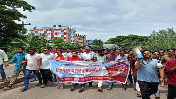ববি প্রতিনিধি// অবকাঠামোগত উন্নয়নসহ তিন দফা দাবিতে মানববন্ধন ও ঢাকা-কুয়াকাটা মহাসড়ক অবরোধ করেছে বরিশাল বিশ্ববিদ্যালয়ের শিক্ষার্থীরা। রবিবার দুপুর সাড়ে ১২ টায় বিশ্ববিদ্যালয়ের মূল ফটকে এই মানববন্ধন ও সড়ক অবরোধ