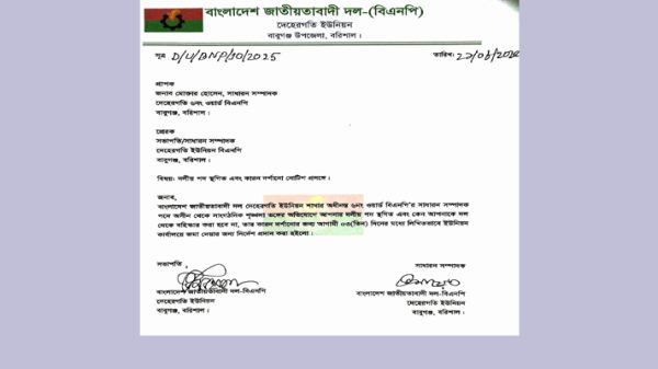 বাবুগঞ্জ(বরিশাল)প্রতিনিধিঃ বরিশালের বাবুগঞ্জ উপজেলার দেহেরগতি ইউনিয়ন বিএনপির ওয়ার্ড পর্যায়ের এক নেতার বিরুদ্ধে সাংগঠনিক শৃঙ্খলা ভঙ্গের অভিযোগে কারণ দর্শানোর নোটিশ জারি করেছে স্থানীয় ইউনিয়ন বিএনপি। ২১ আগস্ট দেহেরগতি ইউনিয়ন বিএনপির