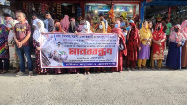 বরিশালে দুষ্কৃতিকারীদের বিরুদ্ধে এলাকাবাসীর মানববন্ধন