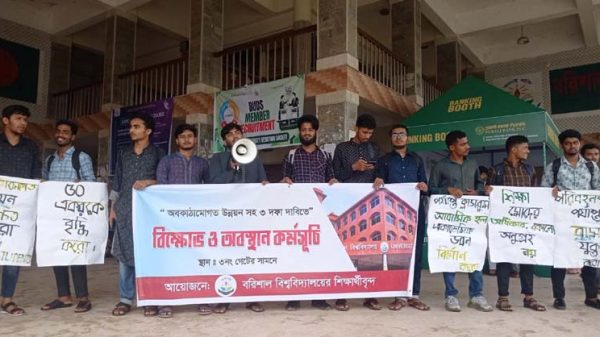 নিজস্ব প্রতিবেদক, বরিশাল: অবকাঠামোগত উন্নয়ন, বিশ্ববিদ্যালয়ের আয়তন বৃদ্ধি এবং নিরাপদ পরিবহন ব্যবস্থা নিশ্চিতের দাবিতে বরিশাল বিশ্ববিদ্যালয়ের (ববি) শিক্ষার্থীরা বৃহস্পতিবার (১৪ আগস্ট) দুপুর ১২টায় বিশ্ববিদ্যালয়ের গ্রাউন্ড ফ্লোরে অবস্থান কর্মসূচি পালন করেন।