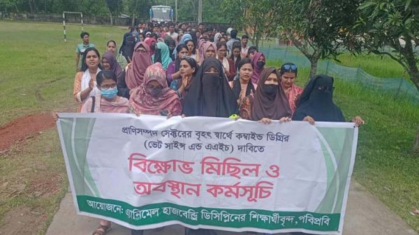 বাবুগঞ্জ (বরিশাল) প্রতিনিধি।। প্রাণিসম্পদ খাতের বৃহৎ স্বার্থে কম্বাইন্ড ডিগ্রির (ভেটেরিনারি মেডিসিন ও অ্যানিমেল সায়েন্স) দাবিতে ক্লাস বর্জন, বিক্ষোভ মিছিল ও অবস্থান কর্মসূচি পালন করেছে বরিশালের বাবুগঞ্জস্থ পবিপ্রবির বরিশাল ক্যাম্পাসের পশুপালন