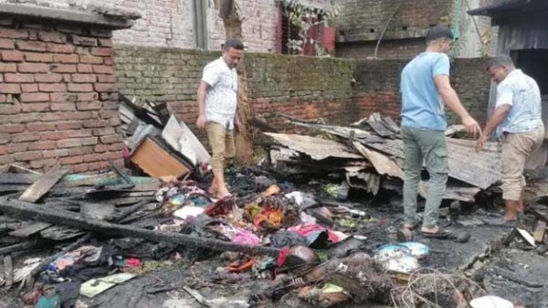 বরিশালে আগুনে পুড়ে ছাই বসতঘর, দগ্ধ গৃহবধূ