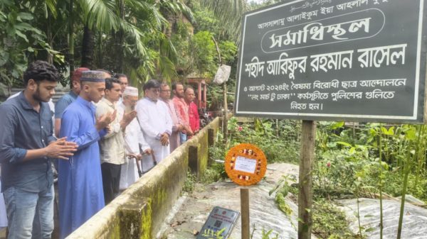 বাকেরগঞ্জ (বরিশাল) প্রতিনিধি: বরিশালের বাকেরগঞ্জে জুলাই শহীদের সমাধিতে ফুলের শ্রদ্ধা নিবেদন এবং পরিবারের মাঝে উপহার সামগ্রী প্রদান করেছেন বিএনপি নেতৃবৃন্দ। মঙ্গলবার (৫ আগস্ট) সকাল বাকেরঞ্জে ৬ জন শহীদের সমাধিতে ফুল