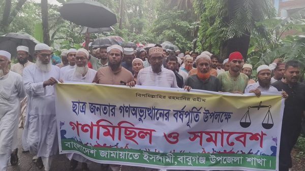 বাবুগঞ্জ (বরিশাল) প্রতিনিধি: ছাত্র-জনতার গণঅভ্যুত্থানের বর্ষপূর্তি উপলক্ষে বাংলাদেশ জামায়াতে ইসলামী, বাবুগঞ্জ উপজেলা শাখার উদ্যোগে গণমিছিল ও সমাবেশ অনুষ্ঠিত হয়েছে। মঙ্গলবার (৫ আগস্ট) বিকাল পাঁচটায় টায় উপজেলার কলেজ গেটে এ কর্মসূচি