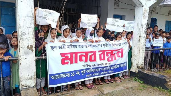 নিজস্ব প্রতিবেদক, বরিশাল: বরিশালের কাজিরহাট থানার জয়নগর ইউনিয়নে ১১ নং পূর্ব কাদিরাবাদ সরকারি নিম্ন মাধ্যমিক বিদ্যালয়ের ৮ম শ্রেণীর ছাত্রী মরিয়ম হত্যার বিচারের মানববন্ধন কর্মসূচি পালিত হয়েছে।সোমবার সকাল ১১টার বিদ্যালয়ের শিক্ষক