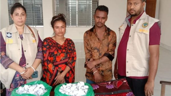 নিজস্ব প্রতিবেদক, বরিশাল: বরিশাল শহরের আলোচিত মাদকবিক্রেতা জুতি-মুন্নাকে গ্রেপ্তার করেছে গোয়েন্দা পুলিশ। নগরীর ভাটারখাল এলাকায় সোমবার রাতে অভিযান চালিয়ে তাদের গাঁজার একটি বড় চালানসহ গ্রেপ্তার করা হয়। সম্পর্কে স্বামী-স্ত্রী জুতি-মুন্না