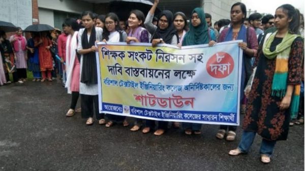 নিজস্ব প্রতিবেদক, বরিশাল: শিক্ষক সংকট নিরসনসহ ৮ দফা দাবি বাস্তবায়নের লক্ষে বরিশাল টেক্সটাইল ইঞ্জিনিয়ারিং কলেজে অনির্দিষ্টকালের জন্য শাটডাউন ঘোষণা করা হয়েছে। রবিবার দুপুরে কলেজ ক্যাম্পাসের প্রশাসনিক ভবনে তালা দিয়ে শাটডাউন