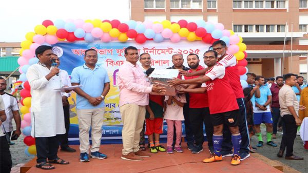 নিজস্ব প্রতিবেদক// বরিশাল মেট্রোপলিটন পুলিশের “আন্ত:বিভাগ ফুটবল টুর্নামেন্ট-২০২৫” এর ফাইনাল খেলা ও পুরস্কার বিতরণী অনুষ্ঠিত হয়েছে। বিএমপি’র পুলিশ লাইন্স মাঠে বিপুল সংখ্যক দর্শক অত্যন্ত আনন্দঘন ও সৌহার্দ্য পরিবেশে এক জমজমাট