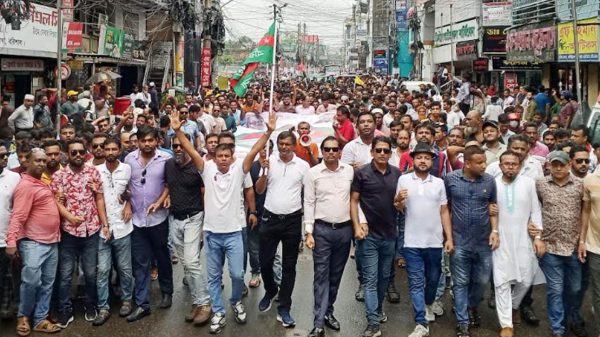 বরিশালে স্বেচ্ছাসেবক দলের বিক্ষোভ মিছিল