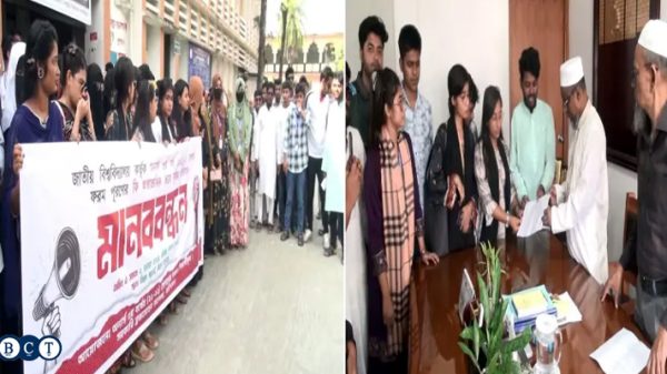 ফরম পূরণের ফি বৃদ্ধির প্রতিবাদে বিএম কলেজে শিক্ষার্থীরা