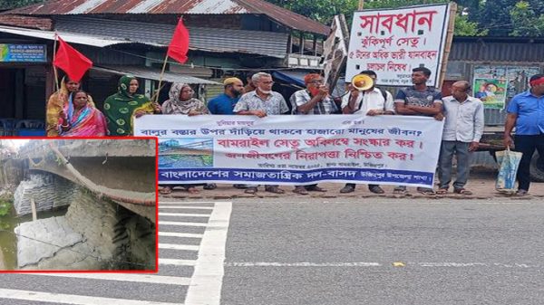 ঢাকা-বরিশাল মহাসড়কে ঝুঁকিপূর্ণ ব্রীজ সংস্কারের দাবিতে বাসদের মানববন্ধন