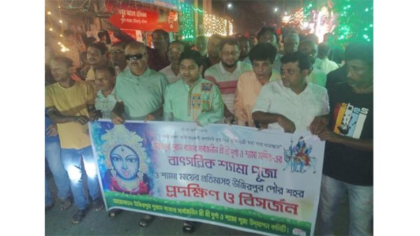 উজিরপুর প্রতিনিধিঃ বরিশাল জেলার উজিরপুরে হিন্দু ধর্মাবলম্বীরা ব্যপক উৎসাহ ও উদ্দীপনার মধ্য দিয়ে শ্যামা পূজা উদযাপন সম্পন্ন হয়েছে। এ উপলক্ষ্যে ২১ অক্টোবর রাত সাড়ে ৯ টার দিকে বর্ণাঢ্য