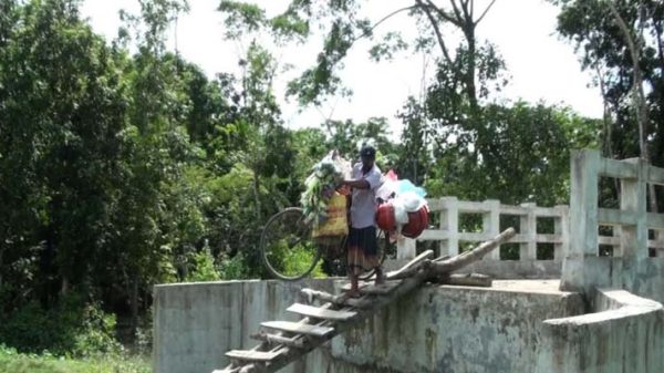 বাকেরগঞ্জে কোটি টাকার সেতু কাজে আসছে না, উঠতে হয় মই দিয়ে!