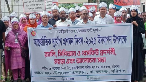 বাকেরগঞ্জে আন্তর্জাতিক দুর্যোগ প্রশমন দিবসে র‍্যালি ও গাছের চাড়া বিতরণ